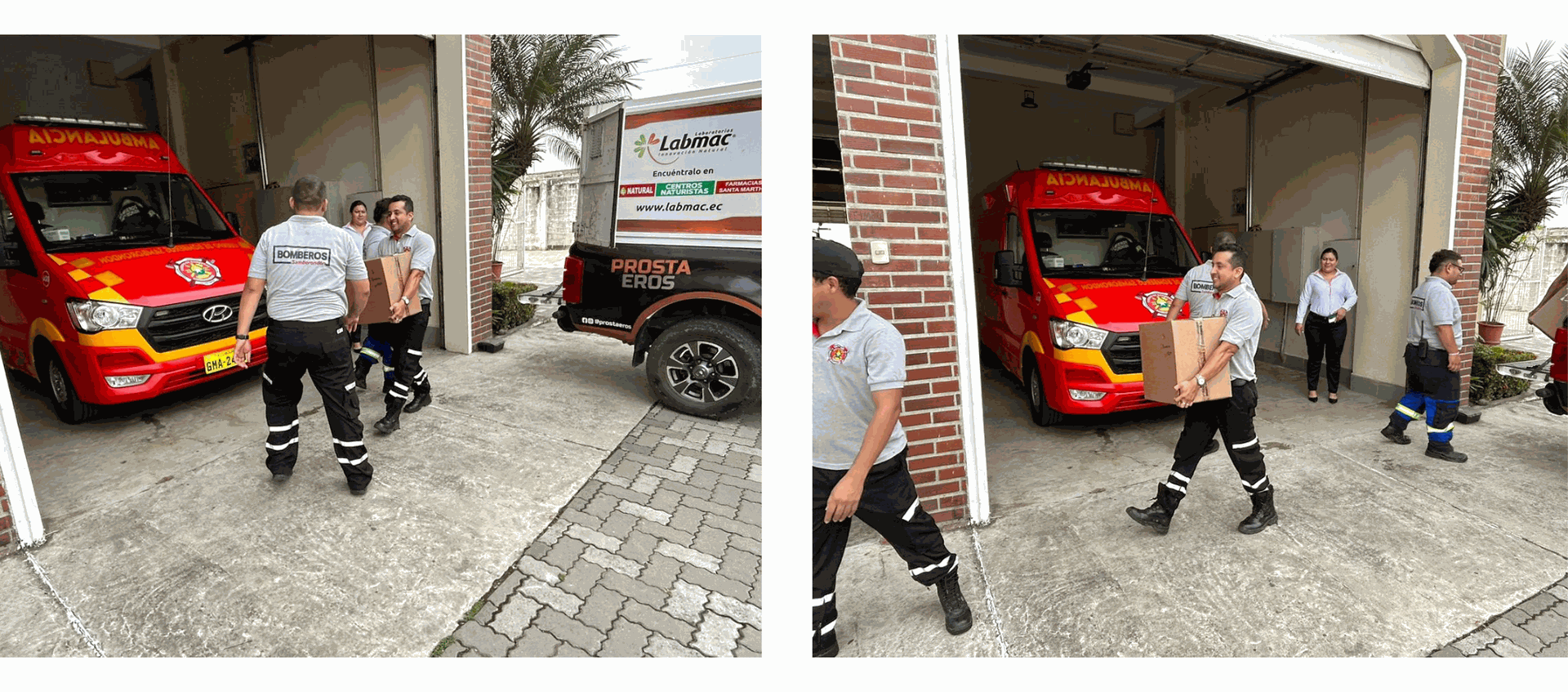 La donación, que constó de 100 kits de vitaminas y suplementos naturales de laboratorios Labmac, fue entregada al Benemérito Cuerpo de Bomberos de Samborondón el martes por la mañana.