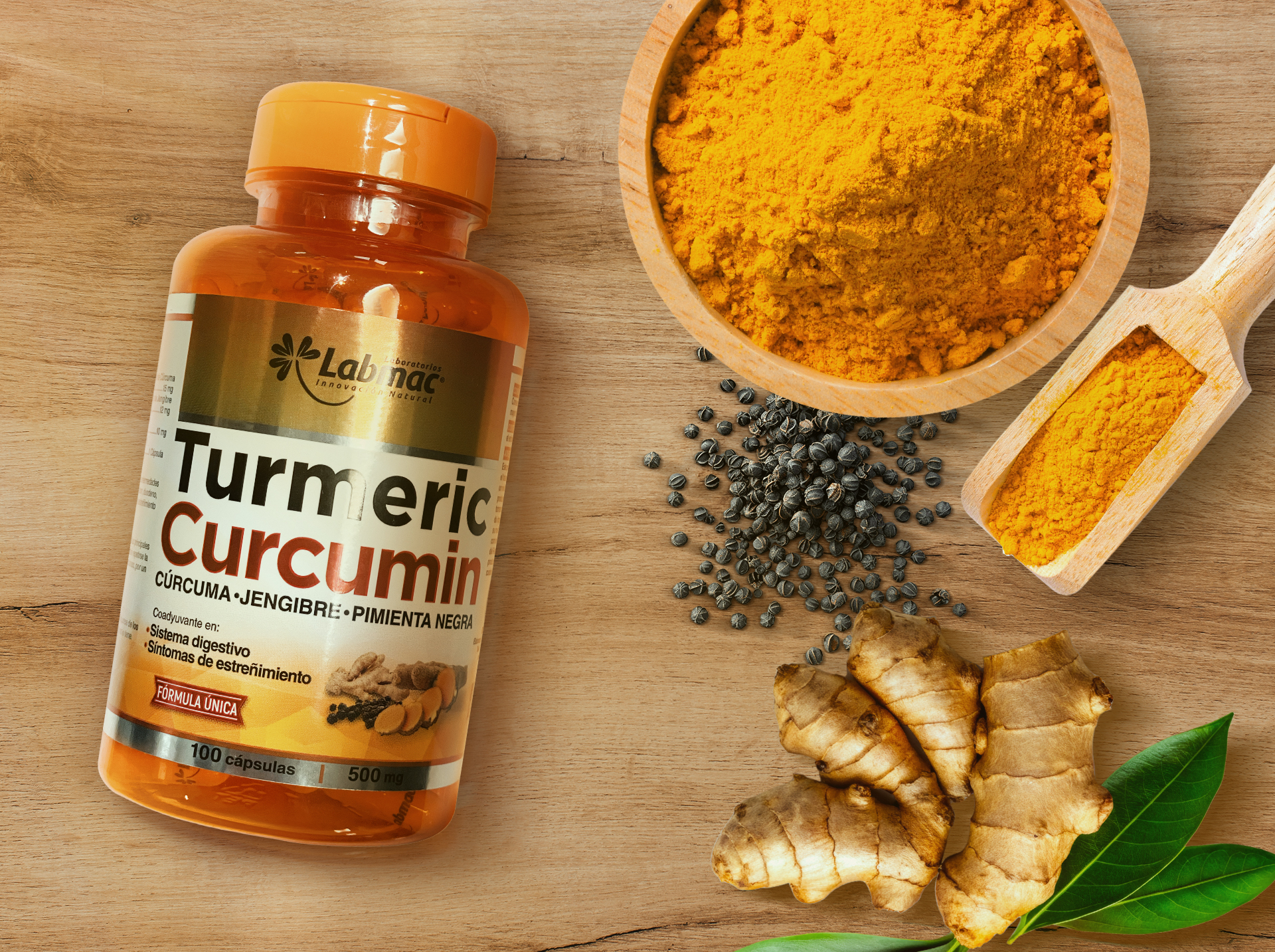 Entonces, puedes consumir Turmeric Curcumin que combina la cúrcuma, pimienta negra y jengibre. Esta fórmula potencia los beneficios antiinflamatorios, mejora la absorción y te ayuda con la digestión.